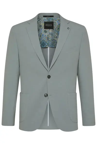 Digel stretch irtotakki. Materiaali: 33%polyamidi, 32% viskoosi, 19%polyesteri, 13% villa, 3%elastaani.